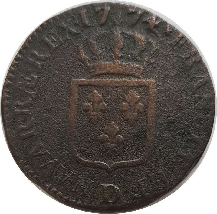LOUIS XV (1715-1774) SOL A LA VIELLE TETE 1774 D (Lyon) TB
