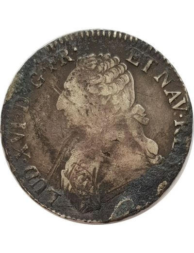 LOUIS XVI (1774-1793) ECU AUX BRANCHES D'OLIVIER 1790 I (Limoges) TB