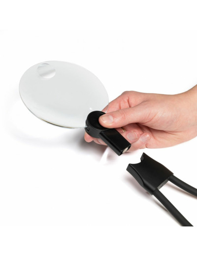Le support flexible permet de suspendre la loupe autour du cou ou de la poser sur une surface plate.