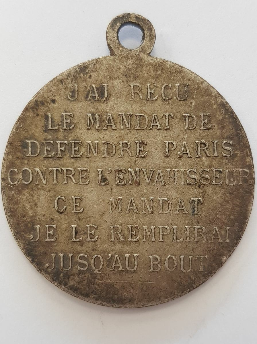 Revers: J'AI RECU LE MANDAT DE DEFENDRE PARIS CONTRE L'ENVAHISSEUR CE MANDAT JE LE REMPLIRAI JUSQU'AU BOUT