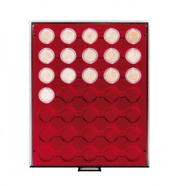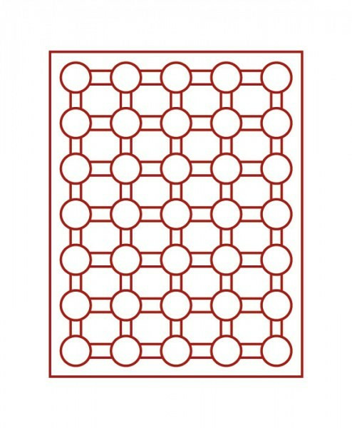 • Plateau numismatique rouge foncé à 35 alvéoles ronds.
