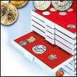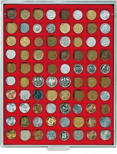 • Plateau numismatique rouge vif à 80 alvéoles carrés.