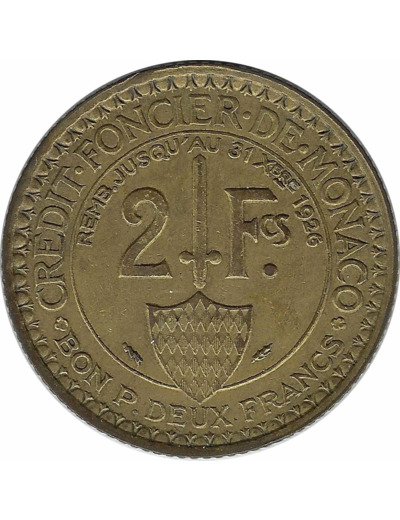 MONACO 2 FRANCS 1924 POISSY TTB+