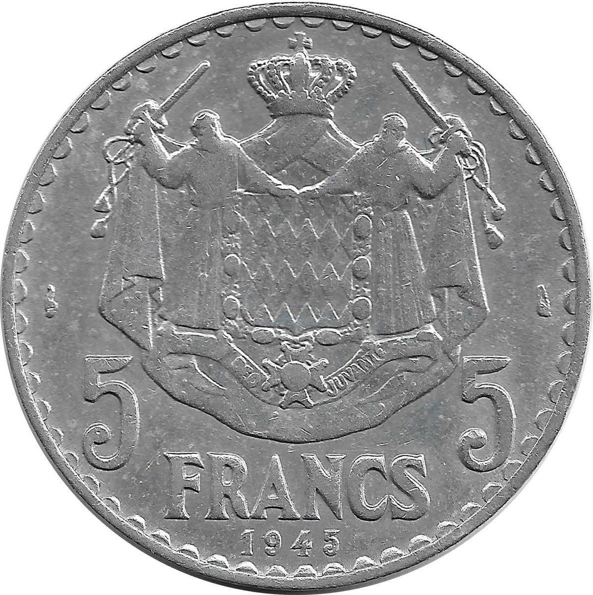 MONACO 5 FRANCS 1945 ALUMINIUM TB+