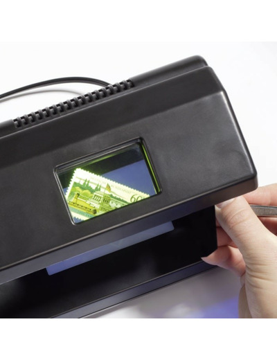 Le multi-testeur vous permet d'examiner des timbres, billets de banque, cartes de crédit. Vous pouvez examiner les bandes fluorescentes de sécurité des billets de banque, pour détecter les faux. Idéal pour les loisirs ou le travail. En raison de la puissante lampe UV 9W (2G7 9W) les particules UV sont visibles même au grand jour. La lampe éclairante (4W) par dessous permet de détecter les filigranes. Loupe intégrée avec grossissement x 2. Fonctionne sur secteur 220 240 V. Coque en plastique noir. Dimensions: 200 x 120 x 160 mm