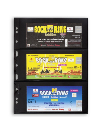 Recharge à fond noir avec 3 bandes soudées transparentes. Les recharges peuvent être chargées des 2 côtés.