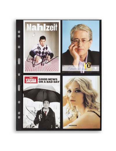 Pochettes plastiques GRANDE, 4 cases pour Cartes Postales, noir