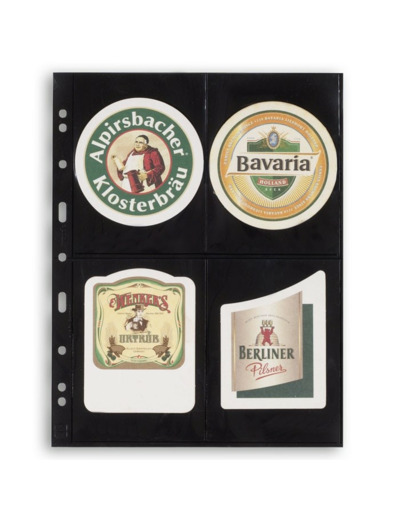 Recharge à fond noir avec 4 pochettes soudées transparentes. Les recharges peuvent être chargées des 2 côtés, par ex. avec des cartes postales.