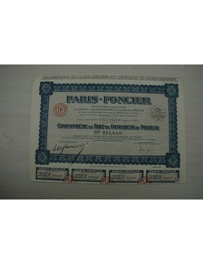 Cinquantième de part de fondateur au porteur du 02/09/1927 Manque 3 coupons sur 32