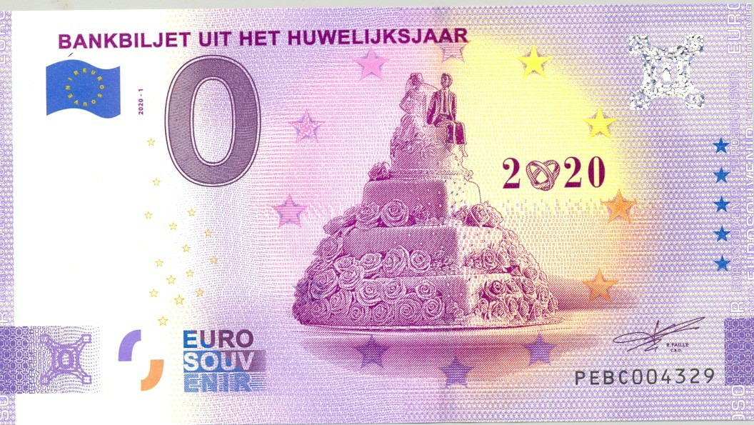 PAYS BAS 2020-1 BANKBILJET UIT HET HUWELIJKSJAAR VERSION ANNIVERSAIRE BILLET SOUVENIR 0 EURO TOURISTIQUE NEUF
