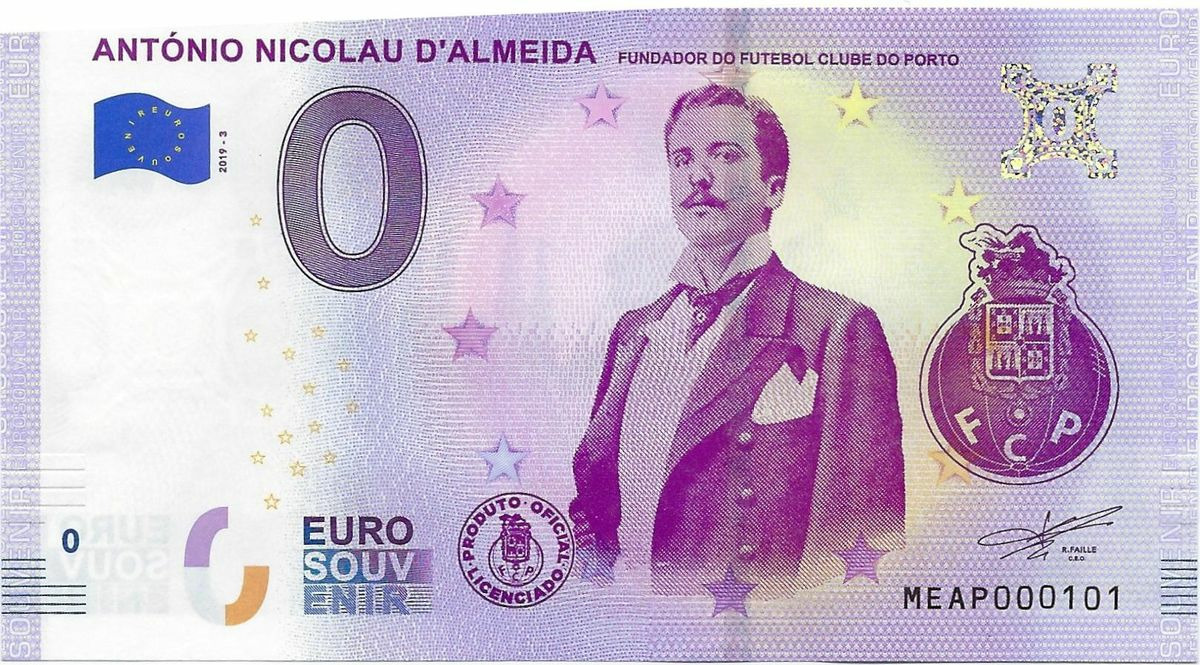 PORTUGAL 2019 -3 ANTONIO NICOLAU D ALMEIDA 0 EURO BILLET SOUVENIR TOURISTIQUE NEUF