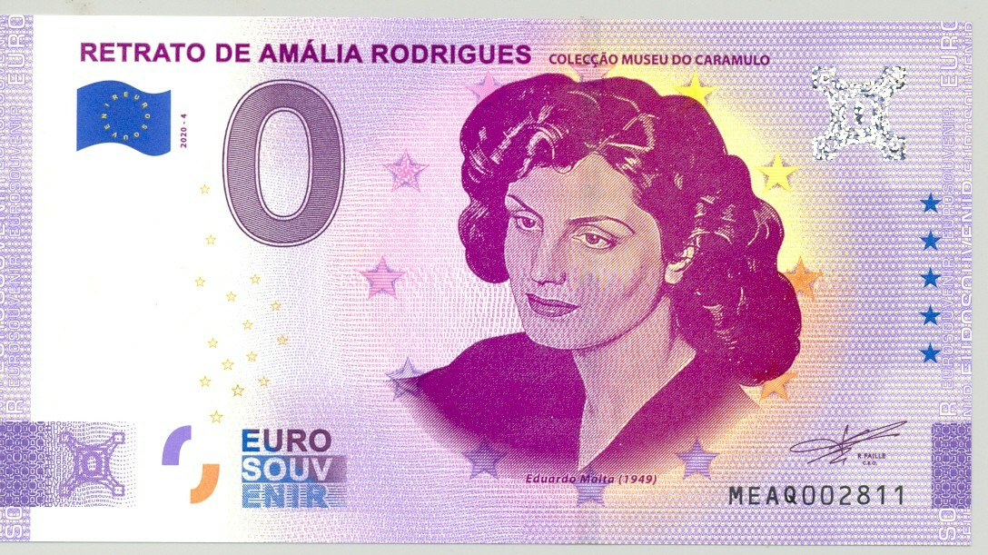 PORTUGAL 2020- 4 RETRATO DE AMALIA RODRIGUES VERSION ANNIVERSAIRE BILLET SOUVENIR 0 EURO TOURISTIQUE NEUF