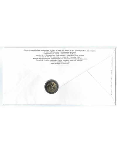 PREMIER JOUR ENVELOPPE PHILATELIQUE NUMISMATIQUE 20eme ANNIVERSAIRE DE LA REVOLUTION DE VELOURS 2 EURO SLOVAQUIE 2009