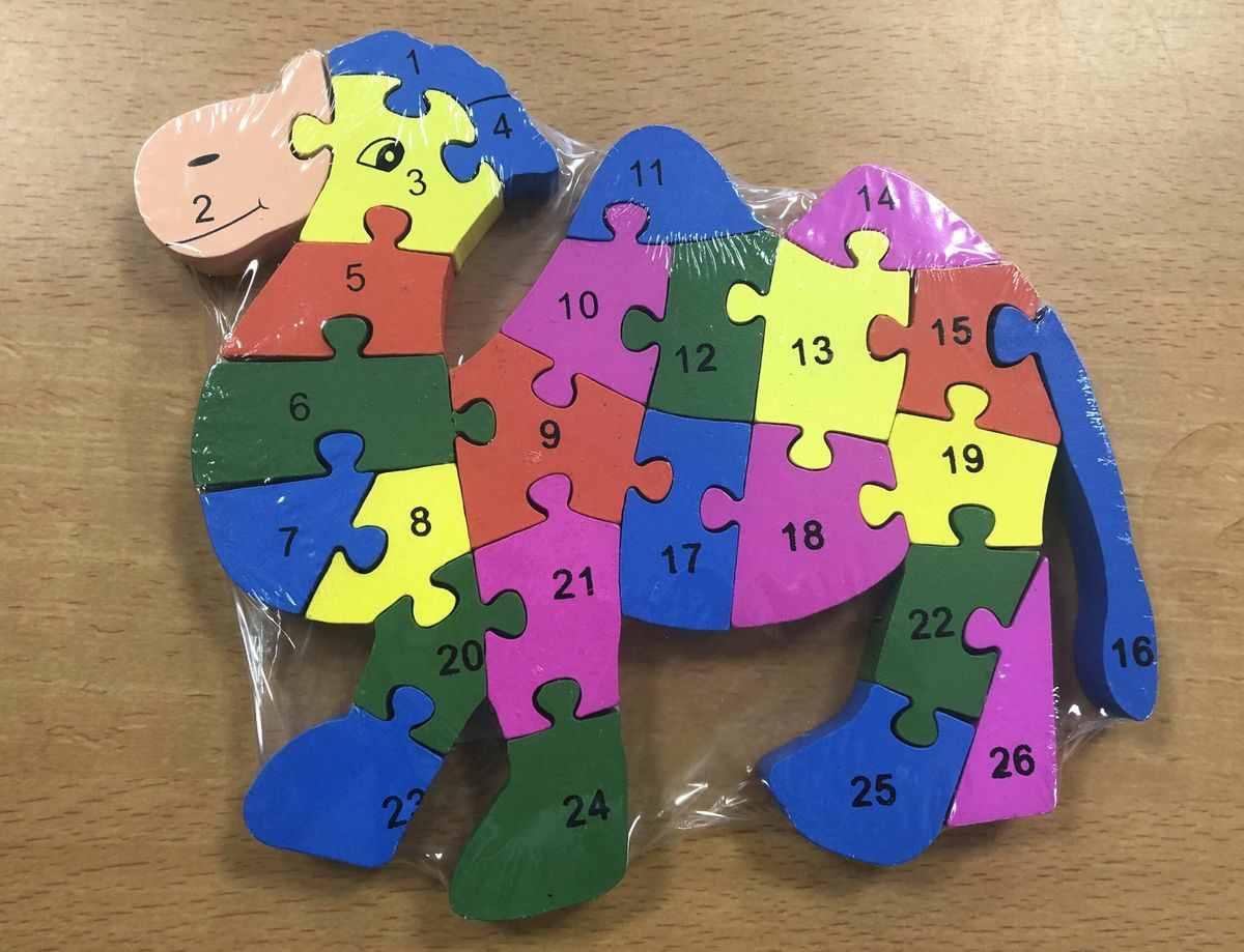 PUZZLE CHAMEAU EN BOIS ALPHABET ET NUMERO NEUF