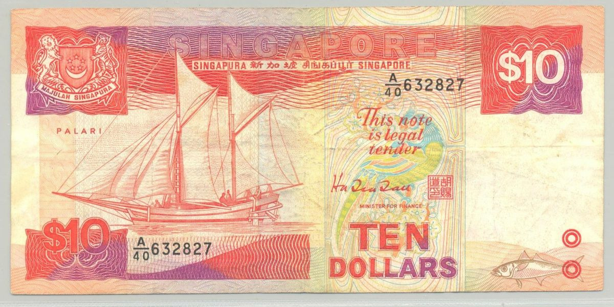 SINGAPOUR 10 DOLLAR NON DATE (1989) SERIE A40 TTB