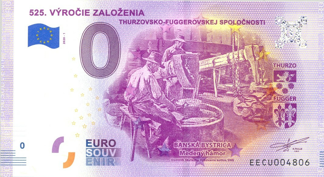 SLOVAQUIE 2020-1 525 VYROCIE ZALOZENIA BILLET SOUVENIR 0 EURO TOURISTIQUE NEUF