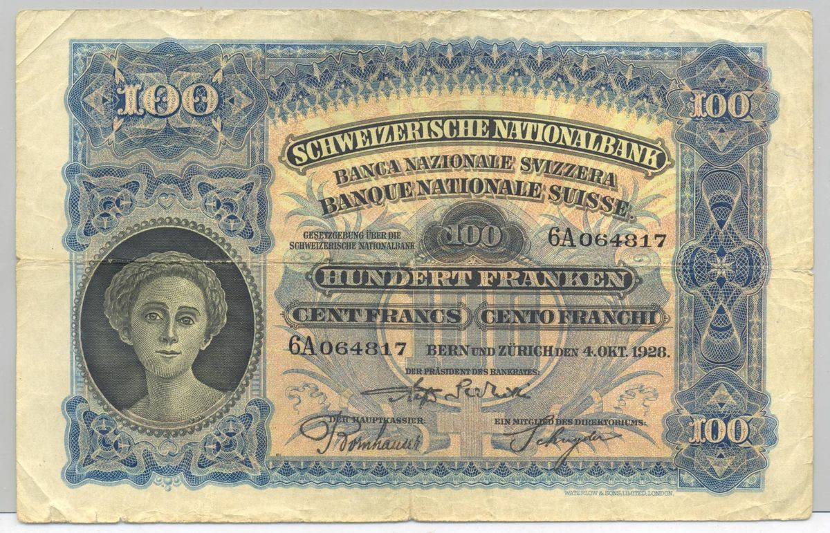 SUISSE 100 FRANCS 04-10-1928 SERIE 6A TB+