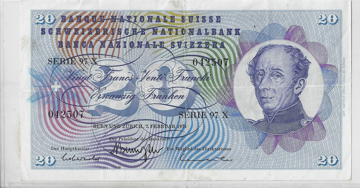 SUISSE 20 FRANKEN 07 02 1974 SERIE 97X TTB