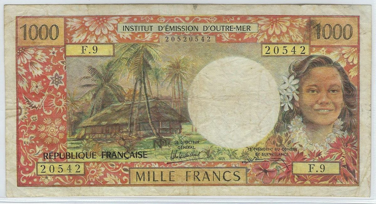 TAHITI PAPEETE 1000 FRANCS ND 1985 SERIE F.9 SIGNATURE 5 TB+