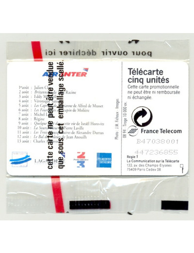 TELECARTE NSB 5 UNITE 08/94 FESTIVAL RAMATUELLE 94 GN73
