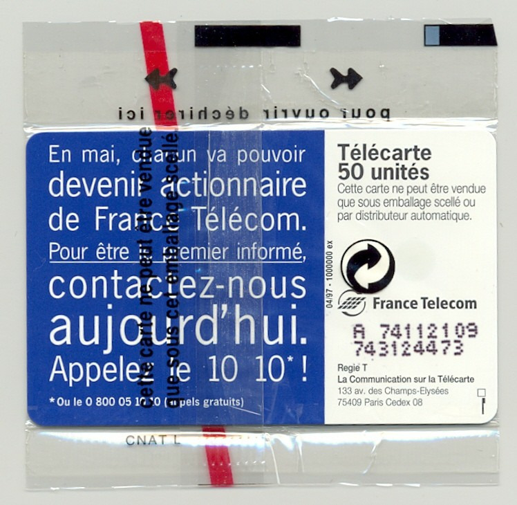 TELECARTE NSB 50 UNITE 04/97 10 10 PRIVATISATION TABLEAU NOIR F727