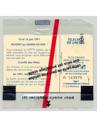 TELECARTE NSB 50 UNITE 06/91 NOGENT SUR MARNE COMITE FETES EN89