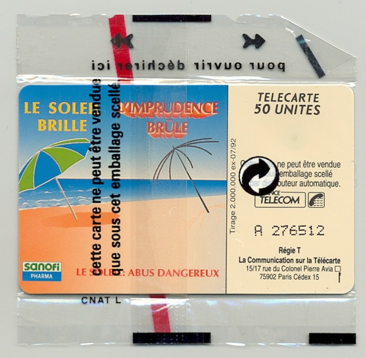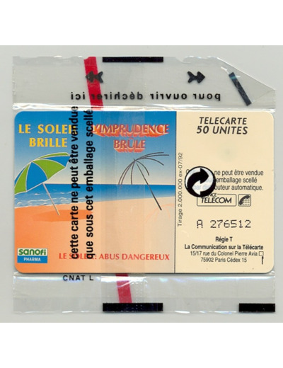 TELECARTE NSB 50 UNITE 07/92 SANOFI 2 GROS LOGO F285A