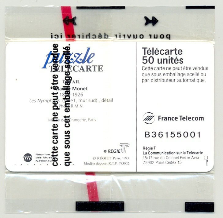 TELECARTE NSB 50 UNITE 08/93 LES NYMPHEAS CLAUDE MONET EN696
