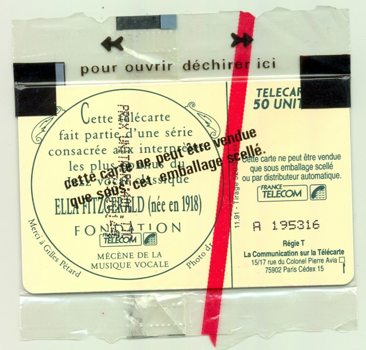 TELECARTE NSB 50 UNITE 11/91 ELLA FITZGERALD F209