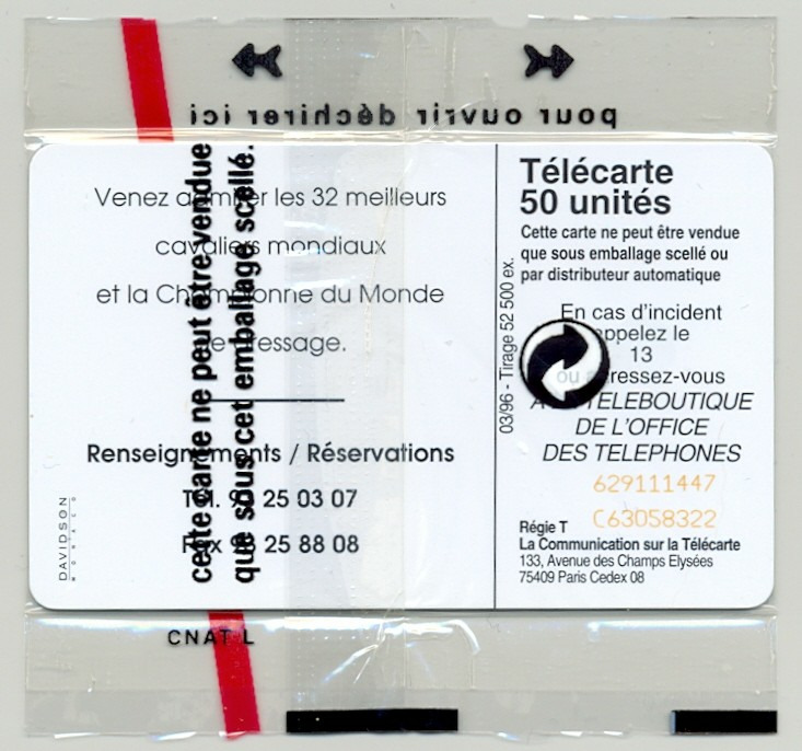 TELECARTE NSB 50 UNITES 03/96 JUMPING SERIE 22 MF38a
