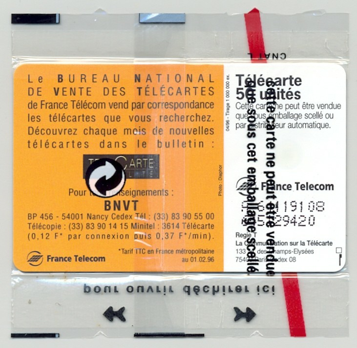 TELECARTE NSB 50 UNITES 04/96 BNVT 96 F639A