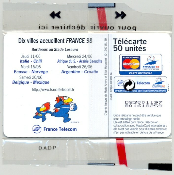 TELECARTE NSB 50 UNITES 04/98 BORDEAUX COUPE DU MONDE FRANCE 98