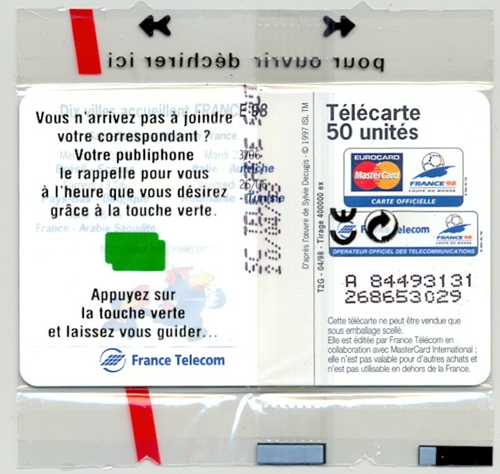 TELECARTE NSB 50 UNITES 04/98 SAINT DENIS COUPE DU MONDE FRANCE 98