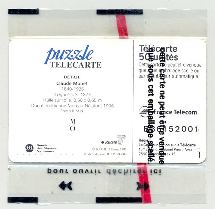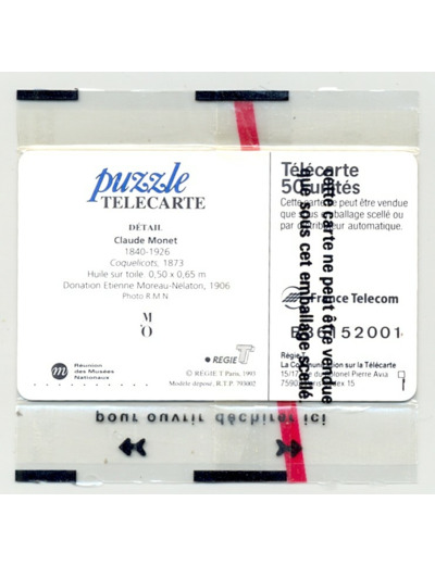 TELECARTE NSB 50 UNITES 08/93 COQUELICOT CLAUDE MONET EN695