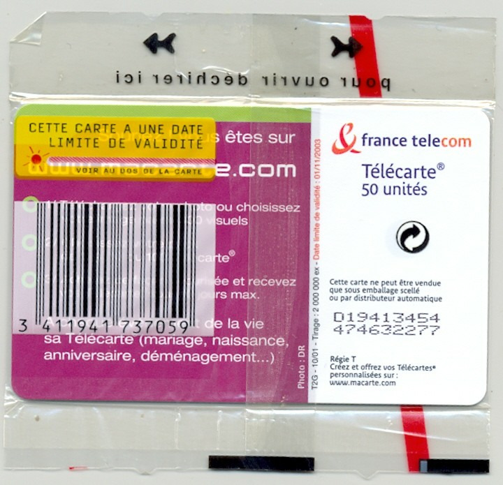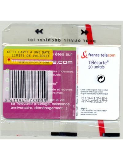 TELECARTE NSB 50 UNITES 10/01 MACARTECOM 2 FUTUR MARIAGE F1177B