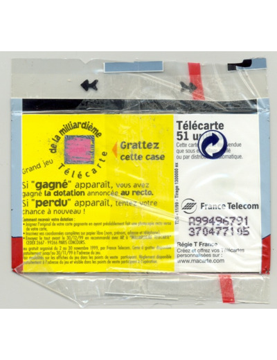 TELECARTE NSB 50 UNITES 11/99 A GRATTER PERDU FRANCE TELECOM F1021A