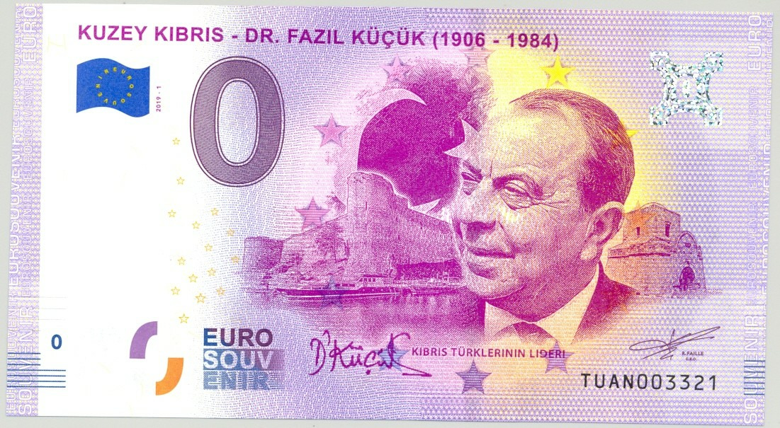 TURQUIE 2019-1 KUZEY KIBRIS DR FAZIL KUCUK BILLET SOUVENIR 0 EURO TOURISTIQUE NEUF