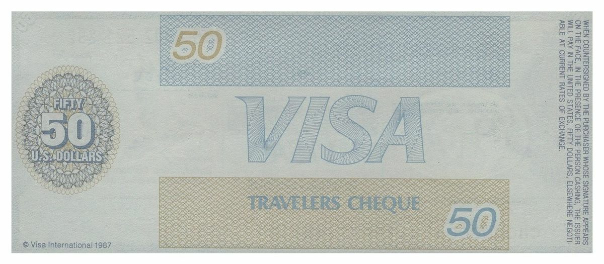 U.S.A TRAVELERS CHEQUE VISA CREDIT LYONNAIS 50 DOLLARS