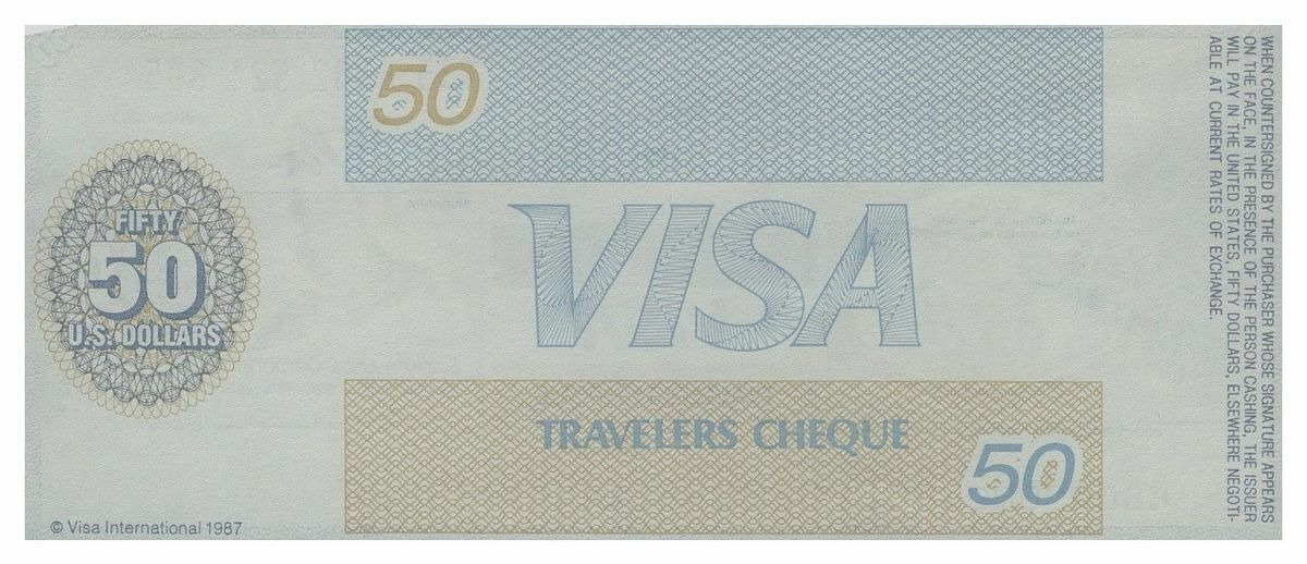 U.S.A TRAVELERS CHEQUE VISA CREDIT LYONNAIS 50 DOLLARS