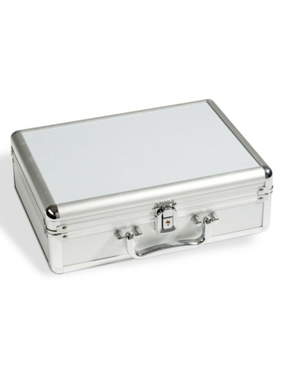 Petite valistette numismatique S sans plateaux. Format extérieur lo x la x ha : 292 x 213 x 97 mm.