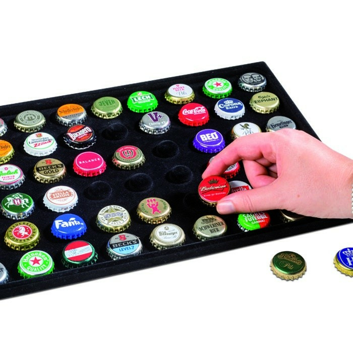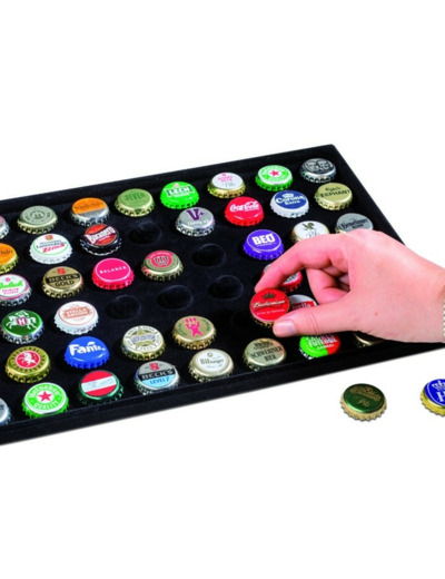 Vitrine FINESTRA pour 60 plaques de muselet champagne, capsules de bière ou monnaies jusqu'à 30 mm, noire. L'insertion en feutrine avec aimants permet de remplir facilement la vitrine sans que les capsules ne glissent, même en position verticale. 2 crochets au dos permettent de fixer la vitrine au mur. Possibilité de placer la vitrine en position horizontale ou verticale. La vitrine peut être utilisée pour présenter également des Jéroboams ainsi que des capsules de bière usagées.