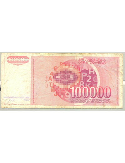 YOUGOSLAVIE 100000 DINARA 01-05-1989 SERIE AR TB+
