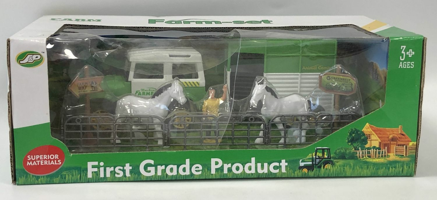 CONTENU : 1 tracteur avec remorque roues libres -1 fermier - des animaux et des accessoires -