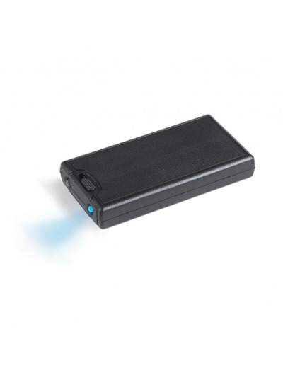 Coque en plastique noir. Avec 2 LED blanches et 1 lampe UV (ondes longues).