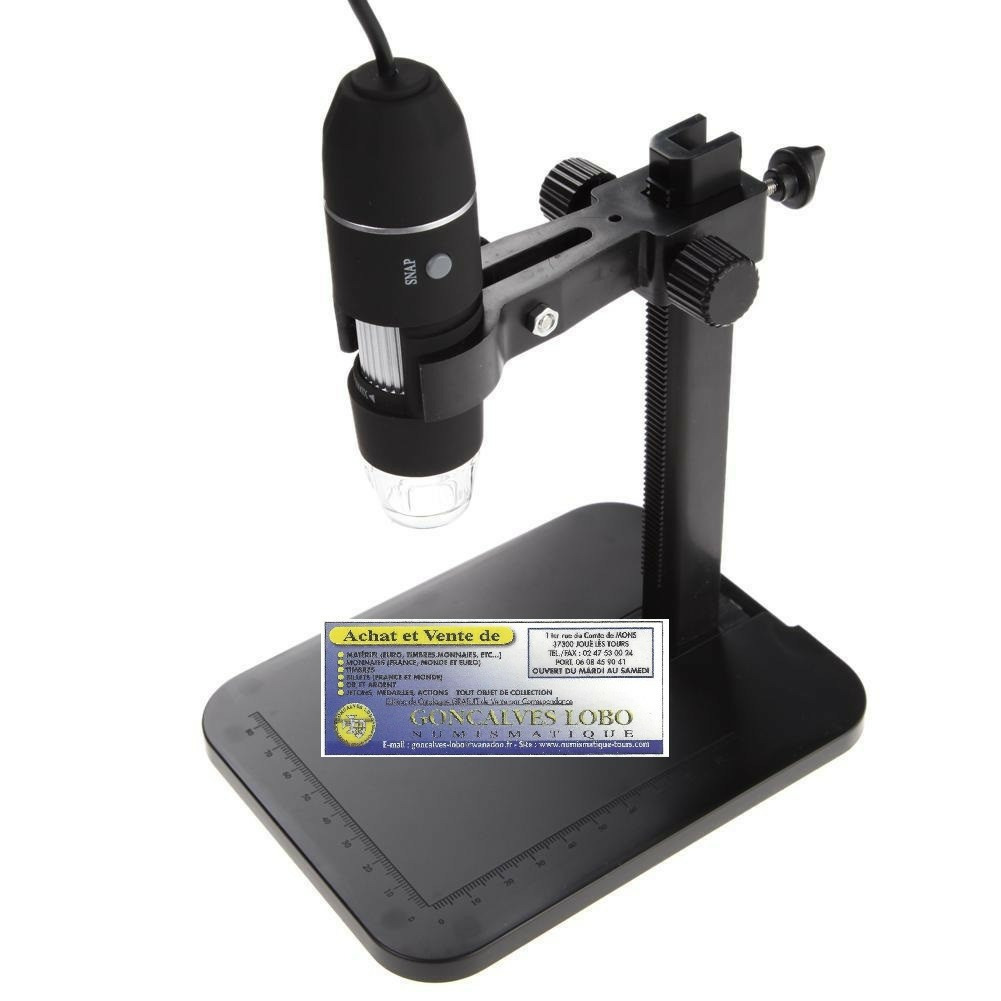 Trépied stable avec une base large et un axe vertical pour bien voir en entier des monnaies, médailles et slabs et en faire des photos ou des vidéos !