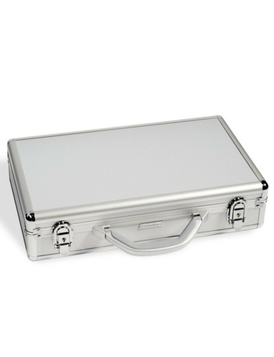 Valisette Numismatique en aluminium avec 6 plateaux pour toutes les pièces courantes.