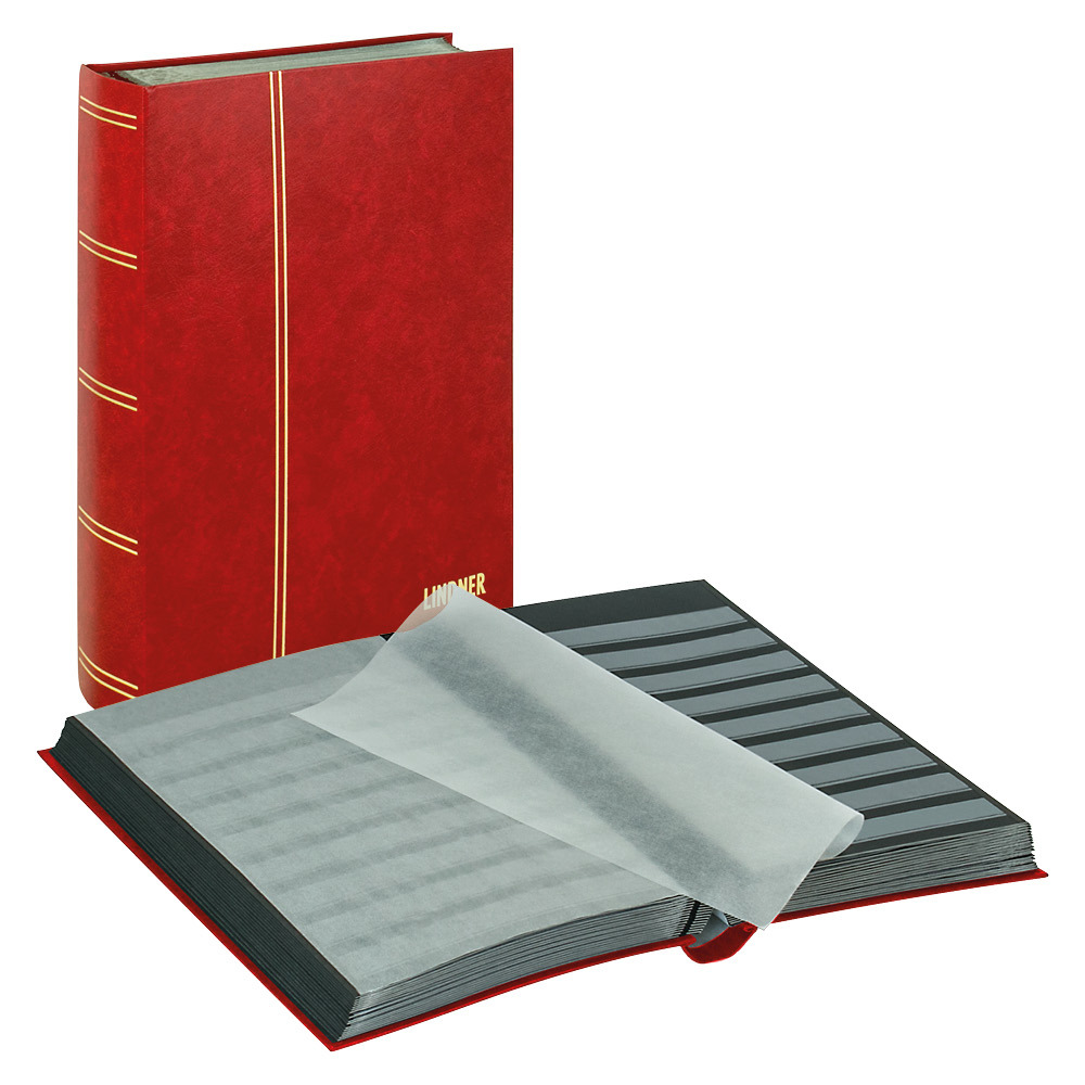 • Classeur pour timbres avec couverture simili cuir non ouatiné.