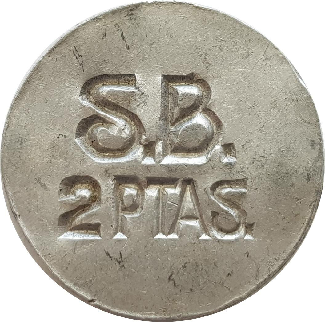 ESPAGNE 2 PESETAS S.B UNIFACE (MONNAIE DE NECESSITE) TTB