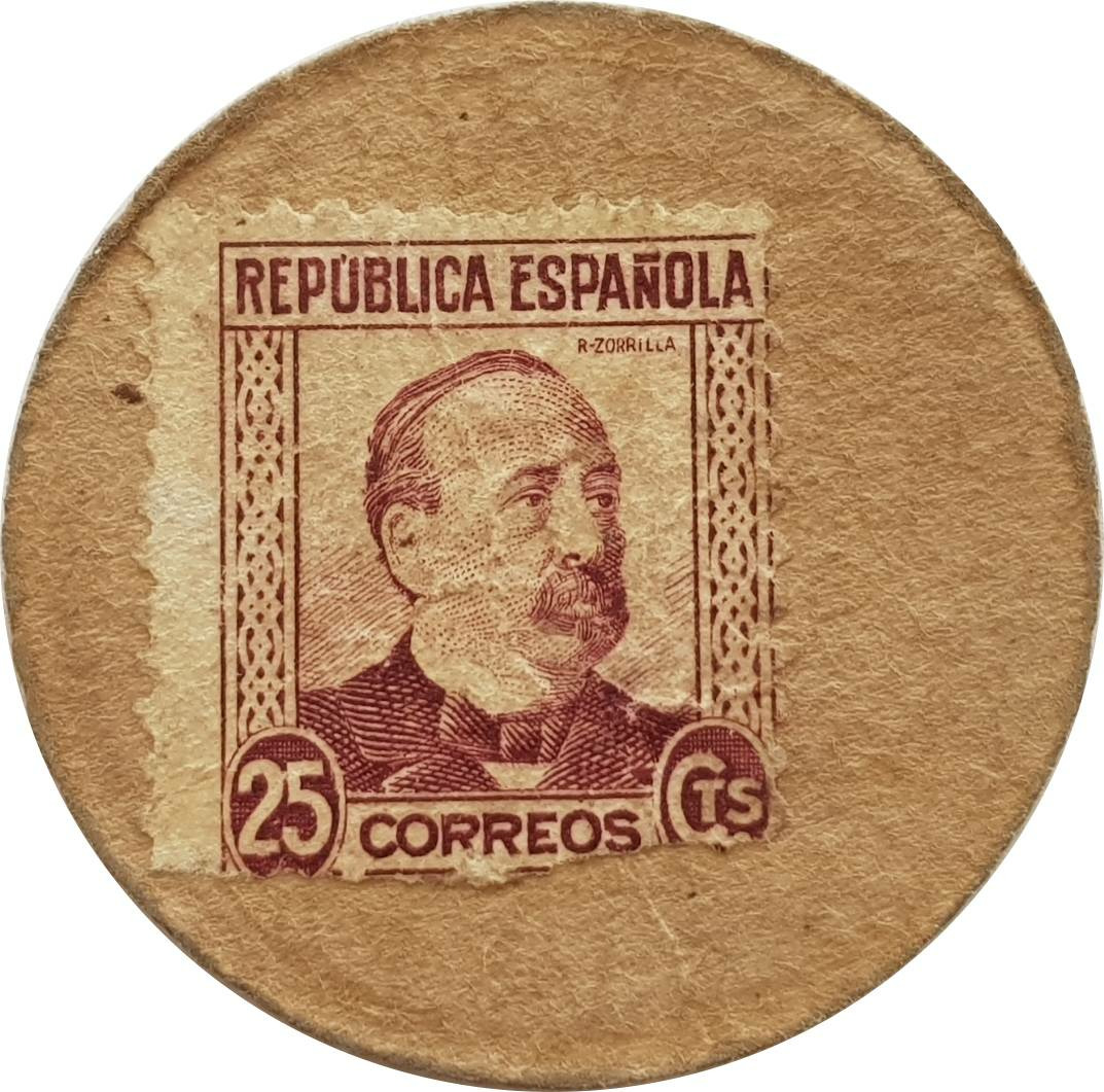 TIMBRE MONNAIE - ESPAGNE - 25 CENTIMOS BORDEAUX LUIS ZORRILLA (1938) TTB- N1