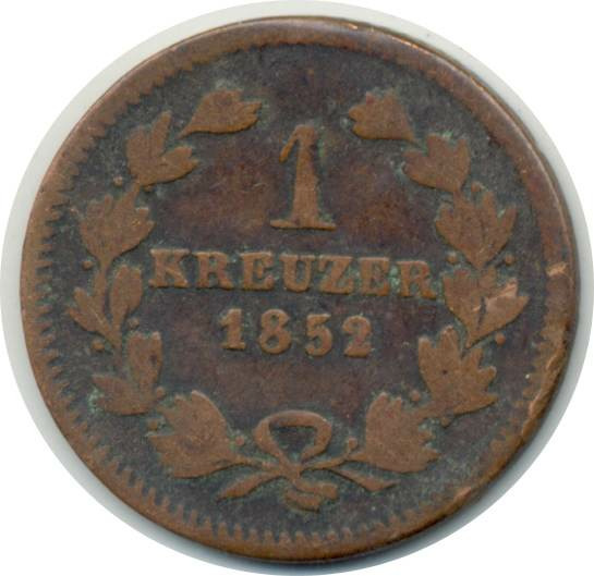 ALLEMAGNE BADEN 1 KREUZER 1852 TB+ (W218.2)